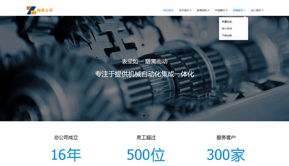 作為一家進口軸承國內(nèi)地區(qū)代理商,網(wǎng)站以穩(wěn)重、亮麗為主題,以墨綠為主背景,以深藍為線條點綴,充分體現(xiàn)行業(yè)特點。