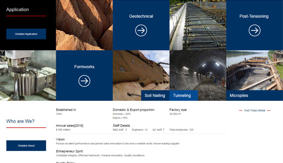 負(fù)責(zé)邯鄲市倚道金屬制品有限公司網(wǎng)站建設(shè)的全體服務(wù),包括:網(wǎng)站設(shè)計(jì)、制作開(kāi)發(fā)、域名空間等網(wǎng)站建設(shè)服務(wù)。因網(wǎng)站是做外貿(mào),故網(wǎng)站語(yǔ)言為英文,網(wǎng)站建設(shè)特點(diǎn)也也參考?xì)W美風(fēng)格進(jìn)行設(shè)計(jì)制作,全站采用div+css構(gòu)架網(wǎng)站結(jié)構(gòu),并對(duì)于各個(gè)細(xì)節(jié)做了詳細(xì)優(yōu)化,使代碼更精簡(jiǎn),為企業(yè)后期進(jìn)行網(wǎng)絡(luò)營(yíng)銷做好前提基礎(chǔ)。