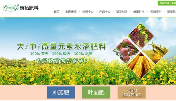 負(fù)責(zé)河北康拓肥料有限公司中英雙語網(wǎng)站建設(shè)的全體服務(wù),包括:網(wǎng)站設(shè)計、制作開發(fā)、域名空間等網(wǎng)站建設(shè)服務(wù)。河北館陶康拓肥料有限公司是一家集研發(fā)、生產(chǎn)、銷售于一體的新型肥料公司。公司成立至今一直致力于將優(yōu)質(zhì)原料和先進(jìn)工藝融入產(chǎn)品的一線生產(chǎn)中。