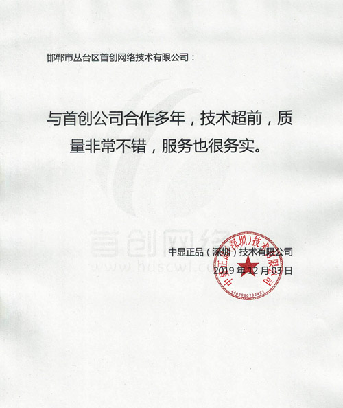 中顯正品(深圳)技術(shù)有限公司對(duì)我公司評(píng)價(jià)